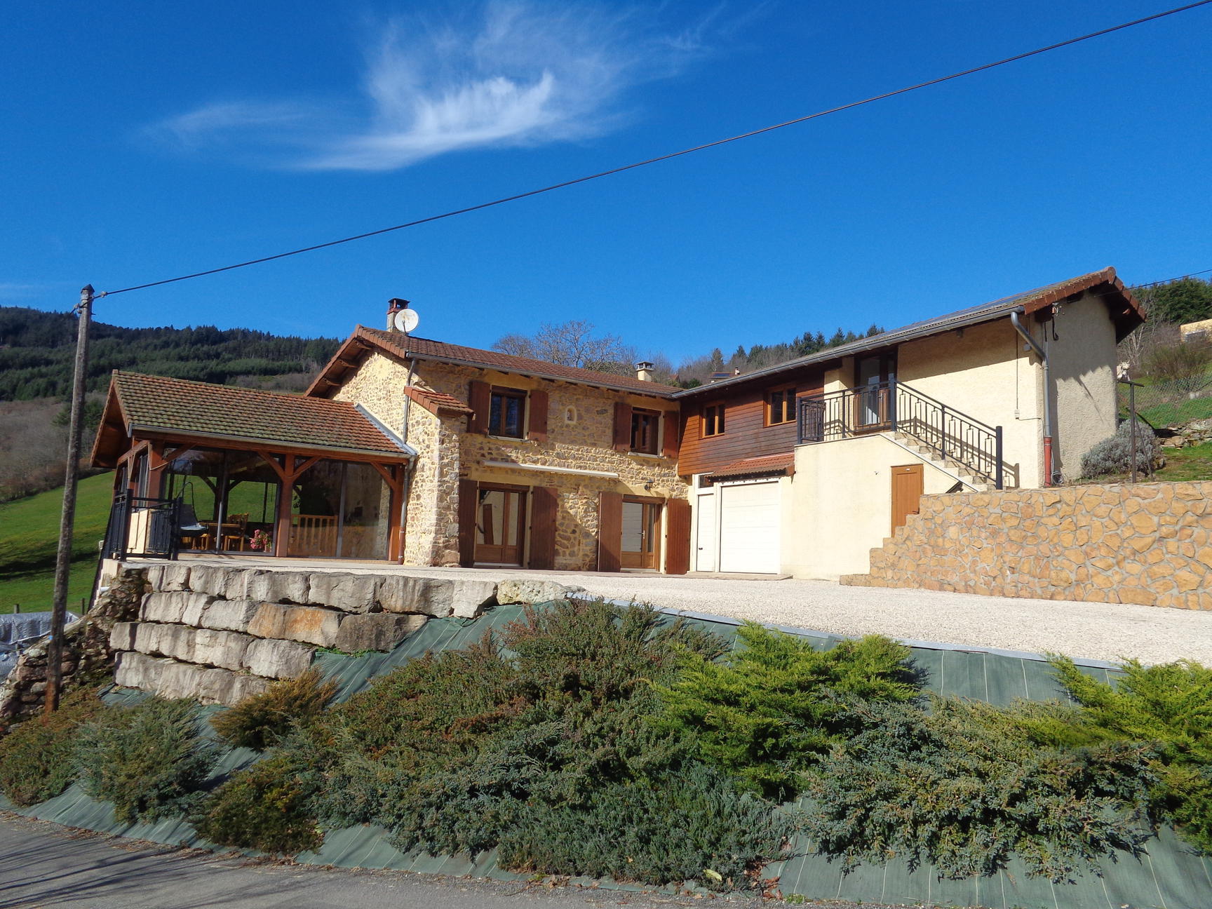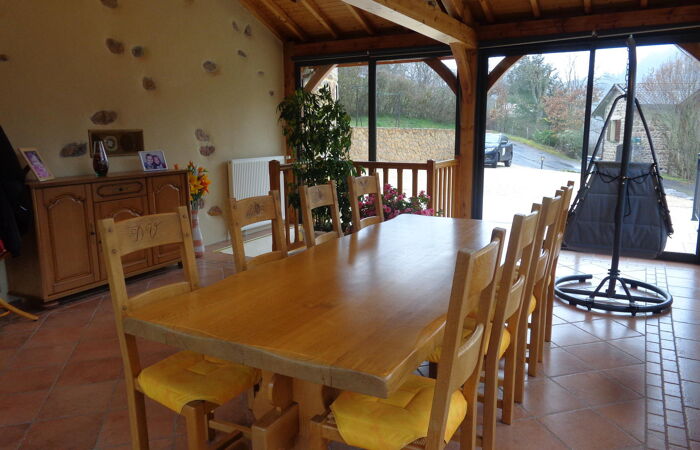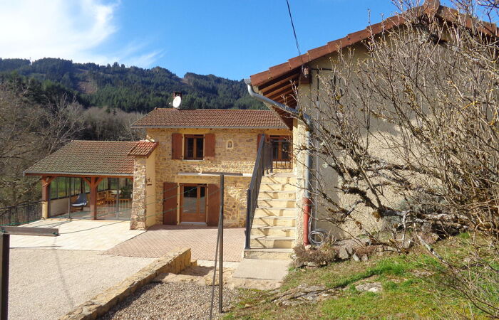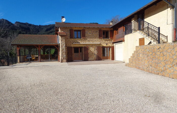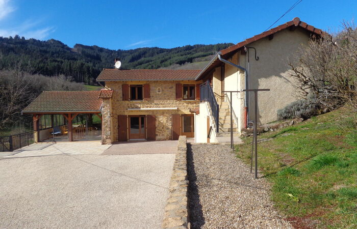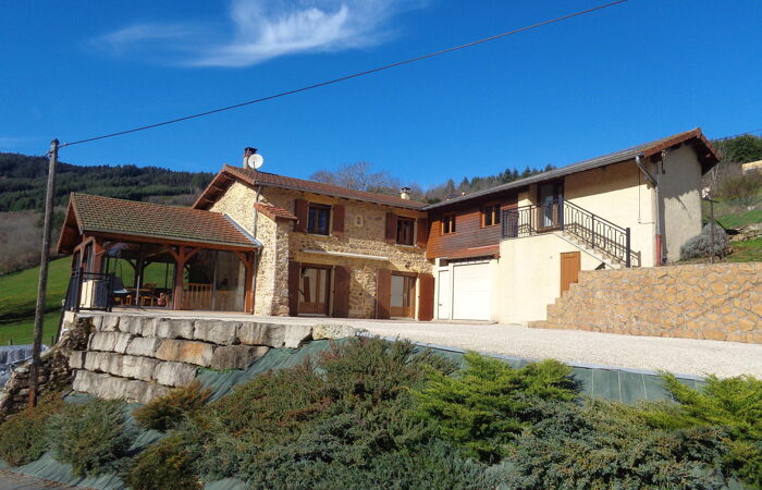 Dans un cadre verdoyant, au calme, à 10 mn de LAMURE SUR AZERGUES, l'AGENCE BAPTISTA IMMOBILIER, vous propose cette maison rénovée, soignée et très bien entretenue offrant une vue dégagée sur un massif forestier. Le rez-de chaussée profitant d'une belle luminosité et donnant sur les terrasses, dispose dune cuisine équipée, d'un salon avec une cheminée à foyer fermé, d 'une spacieuse véranda où se trouve le séjour, une salle d'eau avec douche italienne et double vasque, un w-c , à l'étage quatre chambres, un w-c avec lave mains.Dans la continuité de l'habitation existante ou par une entrée indépendante vous aurez la possibilité d'une extension ou de la création d'un appartement d'environ 40 M². En sous-sol vous profiterez de garages pouvant accueillir trois véhicules, atelier. Cave à vin. Cette maison est équipée de panneaux photovoltaïque avec un rendement de 1 800 euros annuel. Réf 400. Performance énergétiques D Émissions de gaz à effet de serre D Montant estimé des dépenses annuelles d'énergie pour un usage standard entre 3 000 € et 4 110 € par an Prix moyens des énergies indexés sur les années 2021, 2022, 2023 (abonnements compris) conformément à l'arrêté du 31 mars 2021 en vigueur lors de l'établissement du DPE . Les informations sur les risques auxquels ce bien est exposé sont disponibles sur le site Géorisques www.georisques.gouv.fr » Pour tout renseignement, tous nos biens sont sur notre site BAPTISTA IMMOBILIER. Vous souhaitez acheter, vendre, faire estimer votre bien immobilier, contactez Jean BAPTISTA, Agent Immobilier à votre service depuis 20 ans sur toute la Vallée d'Azergues et le Beaujolais.