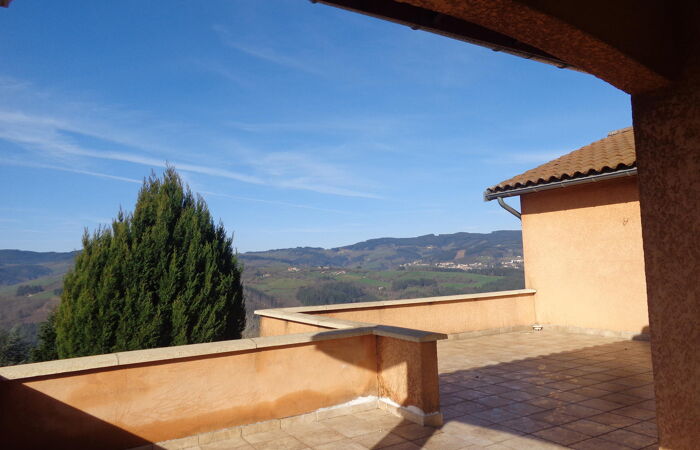 EXCLUSIVITÉ, vue panoramique, calme, l'AGENCE BAPTISTA IMMOBILIER vous propose cette belle villa sur sous-sol complet édifiée sur 1500 M² de terrain. L'habitation de plain pied vous offre un hall d'entrée, une cuisine équipée ouvrant sur le salon-séjour et donnant sur une splendide terrasse d'environ 60 M² exposée Sud Ouest, trois chambres dont une suite parentale avec sa salle d'eau privative et dressing, une seconde salle de bains, un w-c séparé avec lave-mains, une buanderie. Le sous-sol peut accueillir plusieurs véhicules. Portes de garages électriques. Aspiration centralisée. adoucisseur d'eau. Chauffage centrale granulés, chaudière récente. Assainissement collectif. Bel extérieur permettant de profiter pleinement des journées ensoleillées et des soirées entre proches. A découvrir!...Réf 399. Performance énergétiques D Émissions de gaz à effet de serre B Montant estimé des dépenses annuelles d'énergie pour un usage standard entre 2060 € et 2820 € par an Prix moyens des énergies indexés sur les années 2021, 2022, 2023 (abonnements compris) conformément à l'arrêté du 31 mars 2021 en vigueur lors de l'établissement du DPE . Les informations sur les risques auxquels ce bien est exposé sont disponibles sur le site Géorisques www.georisques.gouv.fr » Pour tout renseignement, tous nos biens sont sur notre site BAPTISTA IMMOBILIER. Vous souhaitez acheter, vendre, faire estimer votre bien immobilier, contactez Jean BAPTISTA, Agent Immobilier à votre service depuis 20 ans sur toute la Vallée d'Azergues et le Beaujolais.