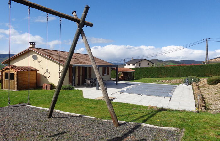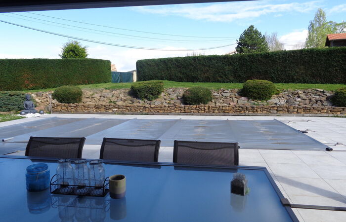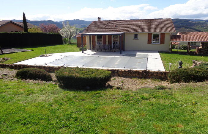 EXCLUSIVITÉ, située sur les hauteurs de CHAMBOST-ALLIÈRES, au calme, magnifique vue, bonne orientation, l'AGENCE BAPTISTA IMMOBILIER vous propose une villa très bien entretenue sur 1500m² de terrain arboré, aménagé et pratiquement clos. L'habitation de plain pied vous offre une cuisine ouverte sur le salon-séjour donnant sur une terrasse abritée par une pergola en aluminium avec un accès à la piscine sécurisée, trois chambres, une salle de bains, un w-c. Le sous-sol est entièrement carrelé, dispose d'une buanderie, d'une douche, d'un w-c, d'une pièce de 18m² pouvant servir de chambre d'amis ou pour un adolescent, d'un garage. Panneau solaire avec un rendement de 1700€ par an. Ref 360. Performance énergétique E. Émissions de gaz à effet de serre B. Montant estimé des dépenses annuelles d'énergie pour un usage standard entre 1510€ et 2100€ par an, prix moyens des énergies indexés au 1er janvier 2021 (abonnements compris). Les informations sur les risques auxquels ce bien est exposé sont disponibles sur le site Géorisques :www.georisques.gouv.fr » Pour tout renseignement, tous nos biens sont sur notre site BAPTISTA IMMOBILIER. Vous souhaitez acheter, vendre, faire estimer votre bien immobilier, contactez Jean BAPTISTA, Agent Immobilier à votre service depuis plus de 18 ans sur toute la Vallée d'Azergues et le Beaujolais.